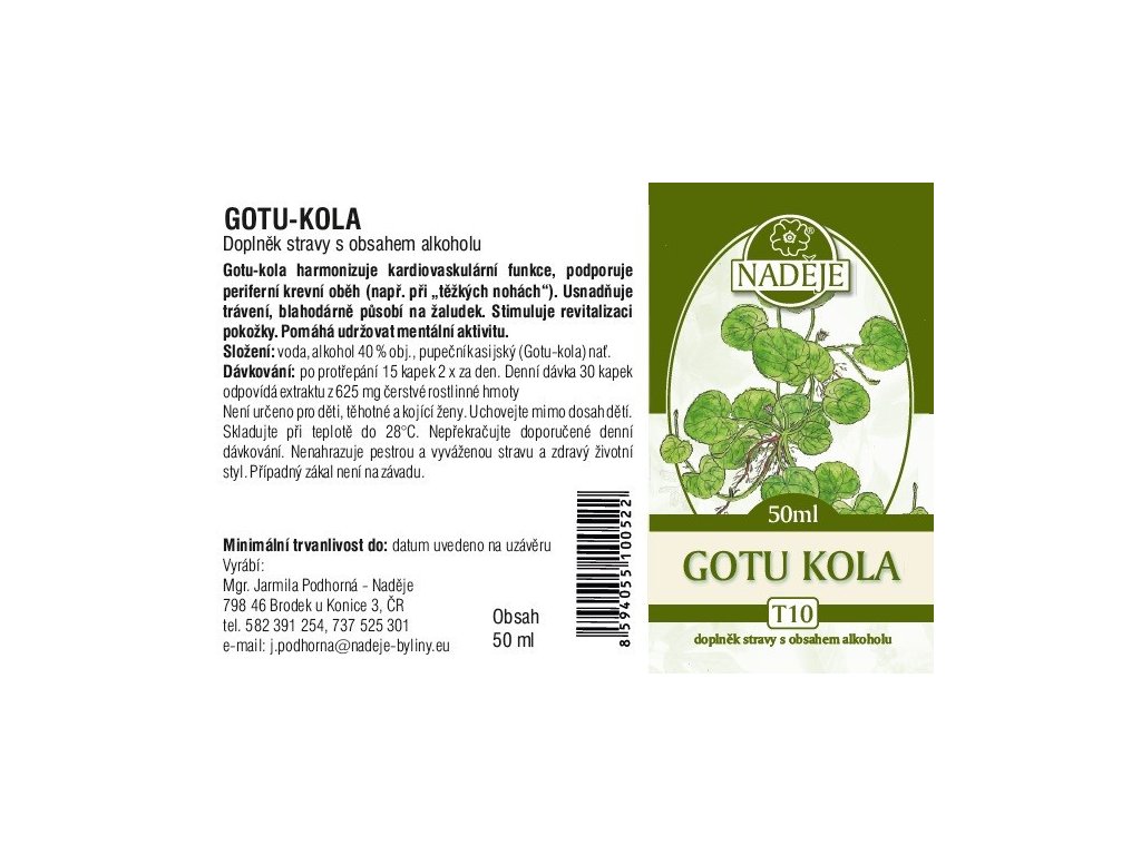 Tinktura T10 z gotu koly je připravena dle receptury Mgr. Jarmily Podhorné a bývá tradičně využívána pro podporu: