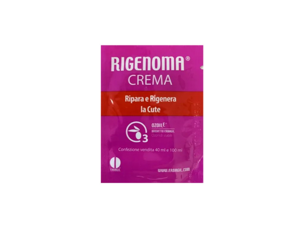 RIGENOMA® krém pro obnovu a regeneraci kůže s OZOILE® je inovativní zdravotnický prostředek pro prevenci a léčbu akutních a chronických kožních lézí i v případě rizika infekce. Podporuje obnovu a okysličení tkáně, snižuje množství mikrobů. Také určen k prevenci a léčbě patologických kožních stavů, jako je akné, lupénka, dermatitidy a dermatózy s různou etiologií, které jsou charakterizovány těmito projevy: zánět, podráždění, erytém, xeróza, svědění, olupování kůže, možné infekce, změny mikroflóry a kožní bariéry.