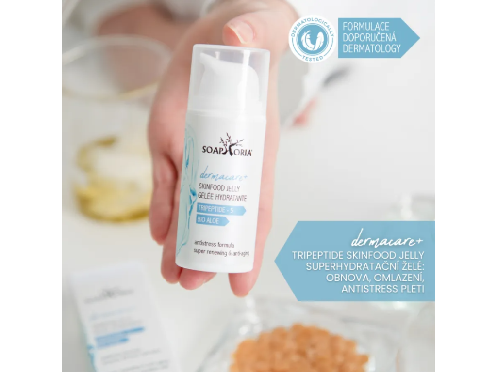 Soaphoria DERMACARE+ Tripeptide Skinfood Jelly superhydratační želé: obnova, omlazení, antistress pleti