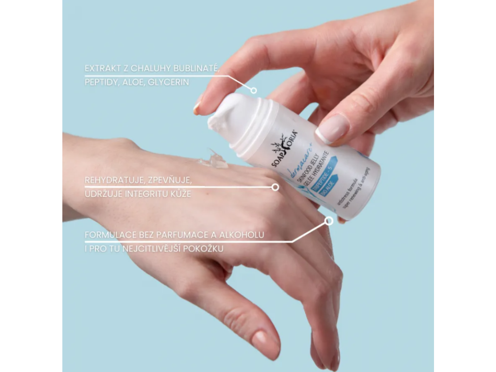 Pro podporu mladistvého vzhledu a komfortu pleti Soaphoria vyvinula komplexní gel rosolovité konzistence (jelly), který obnovuje hydrataci, revitalizuje a předchází předčasnému stárnutí pleti.