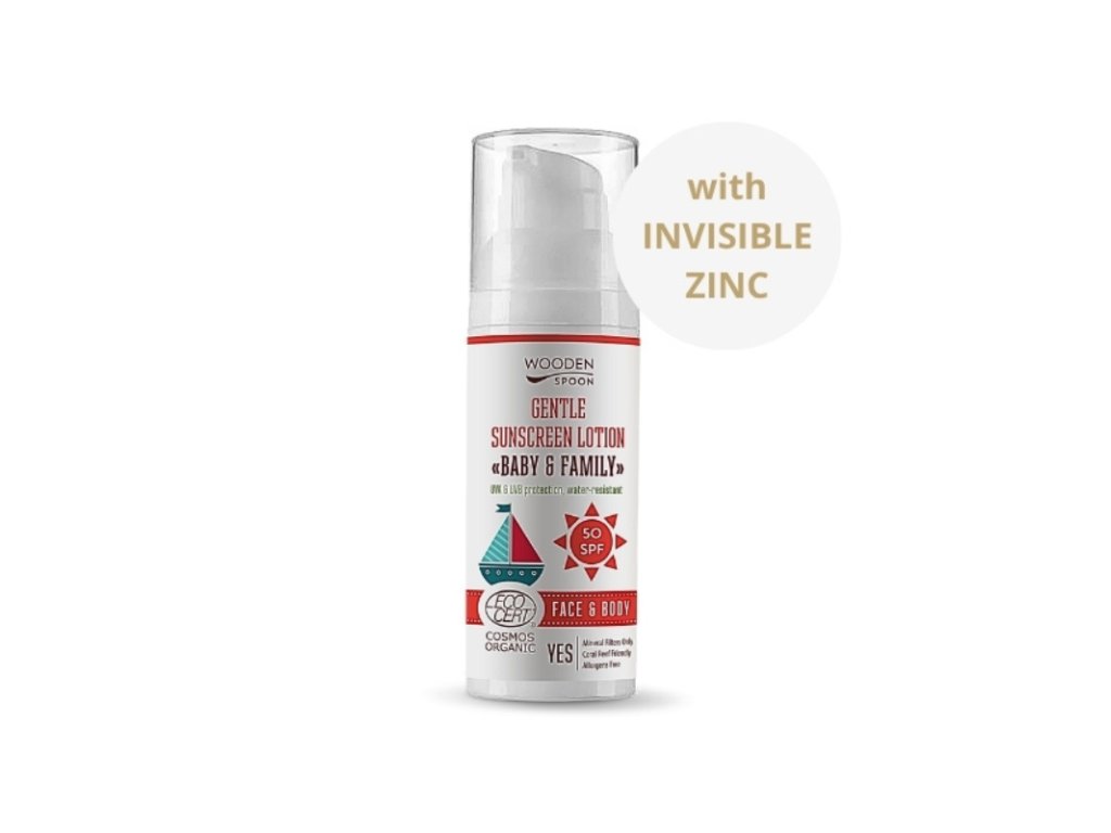Přírodní a bezpečný opalovací krém obsahuje neviditelný zinek. Opalovací krémy s neviditelným zinkem od Wooden Spoon nezanechávají bílé stopy a snadno se nanášejí. Opalovací krémy prošly in-vivo, in-vitro a dermatologickými testy s neviditelným zinkem v certifikovaných laboratořích v Itálii, Polsku a Bulharsku.
